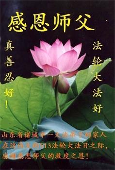 山東濰坊諸城大法弟子恭祝慈悲偉大的師尊生日快樂!慶祝五一三世界法輪大法日!