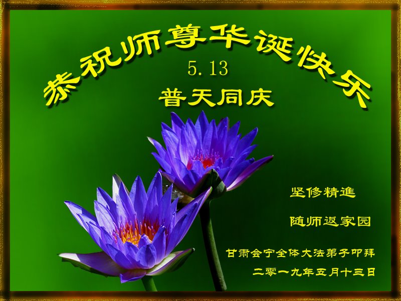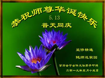 甘肅省永登縣大法弟子全家恭祝慈悲偉大的師尊華誕!普天同慶同頌世界法輪大法日!