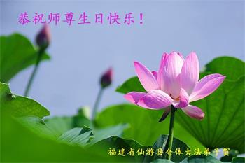 福建省仙遊縣全體大法弟子感謝師尊慈悲苦度,齊賀法輪大法洪傳世間27週年!恭祝師尊生日快樂!