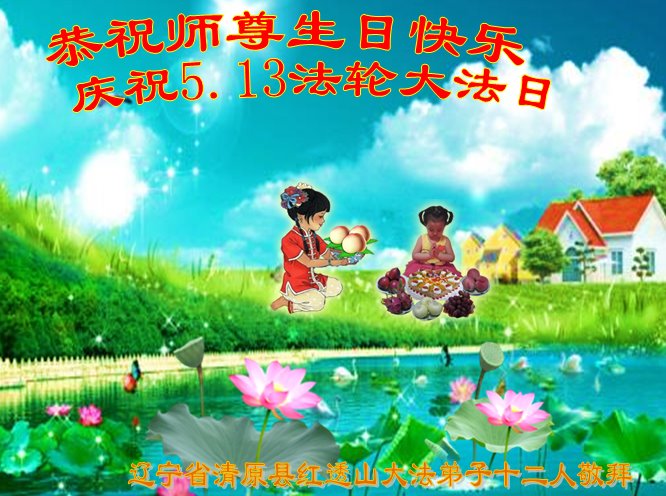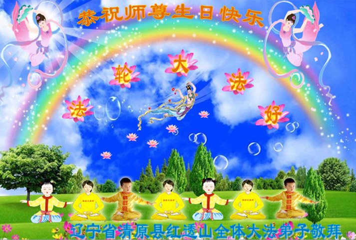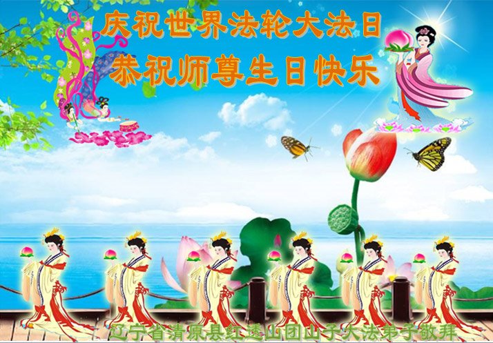 遼寧省撫順市清原縣紅透山團山子大法弟子恭祝師尊生日快樂!慶祝世界法輪大法日!