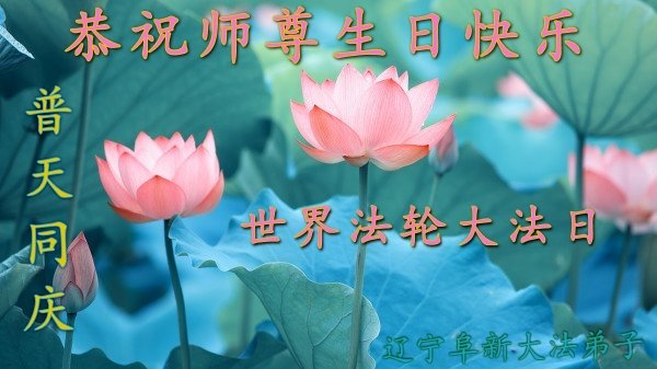 遼寧省阜新市一家大法弟子恭賀法輪大法日!