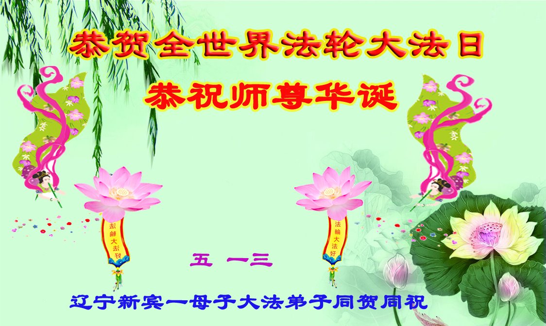 遼寧新賓一母子大法弟子恭賀全世界法輪大法日!恭祝師尊華誕!