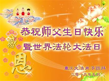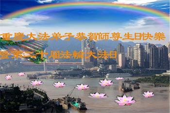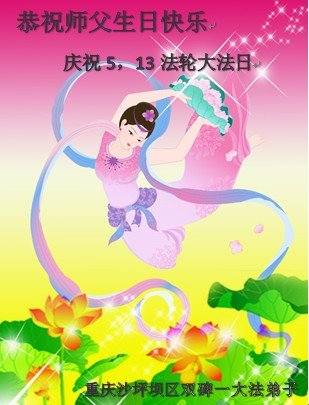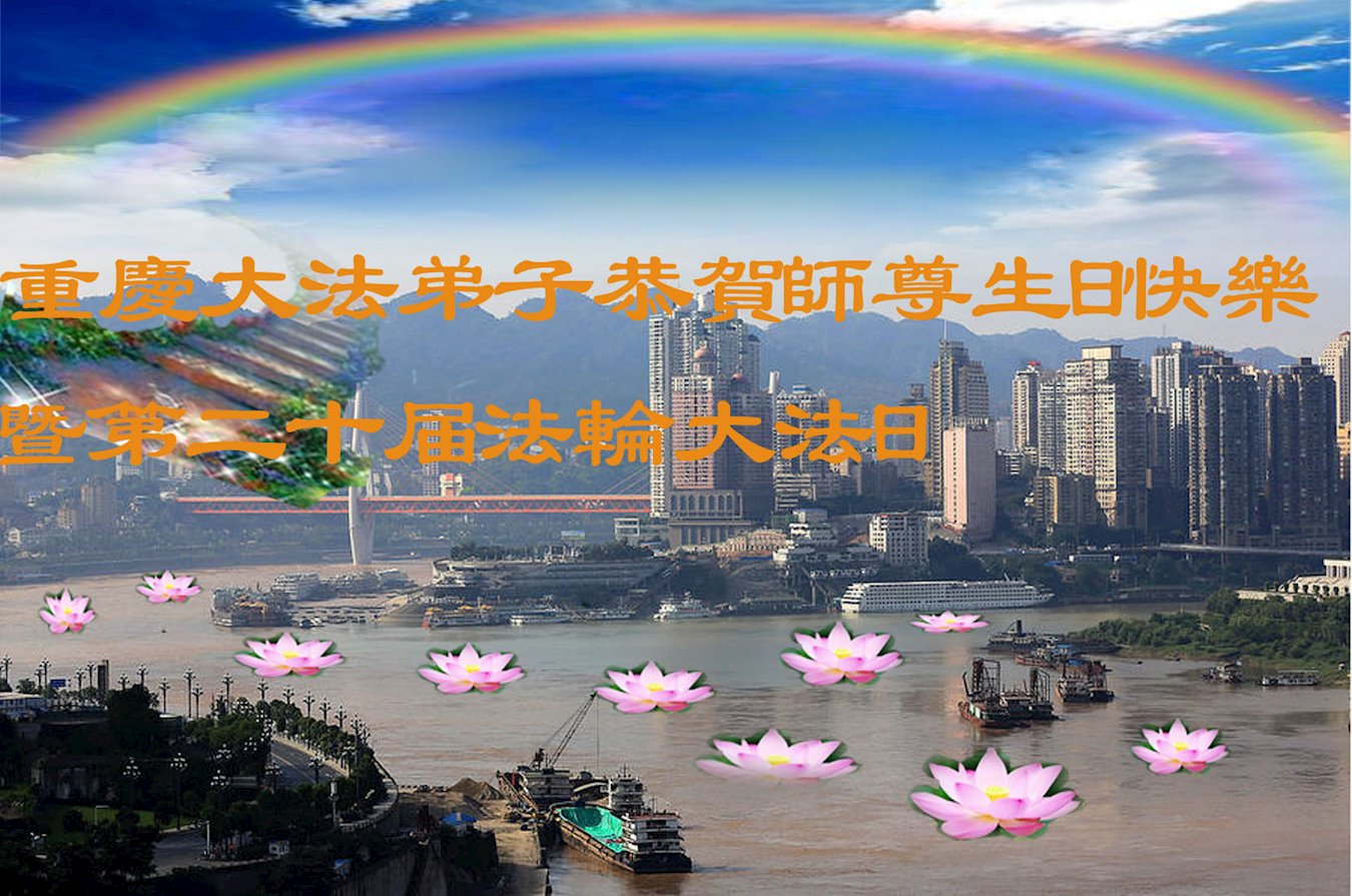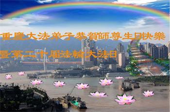 重慶市沙坪壩全體大法弟子恭賀5.13第二十屆世界法輪大法日暨法輪大法洪傳二十七週年!祝慈悲偉大的師父生日快樂!我們叩謝師父的慈悲救度!