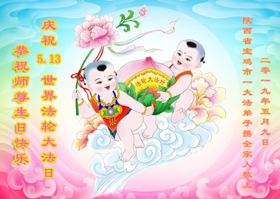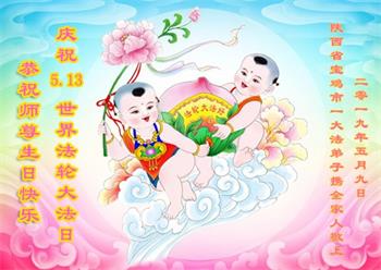 陝西省寶雞市一大法弟子攜全家恭祝師尊生日快樂!
