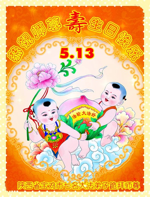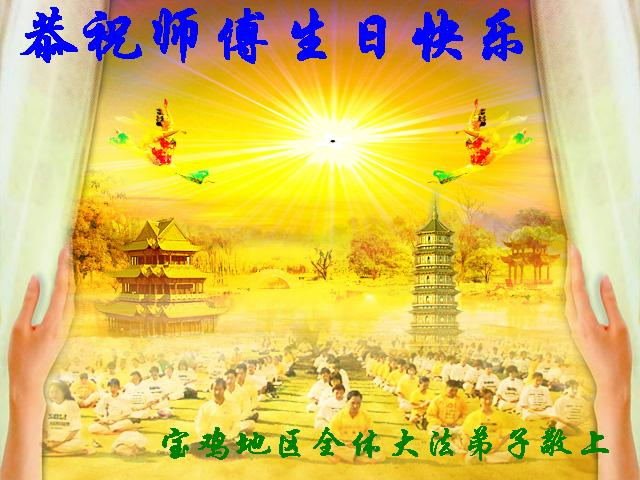 陝西省寶雞市大法弟子恭祝慈悲偉大的師尊生日快樂!普天同慶5●13法輪大法日!