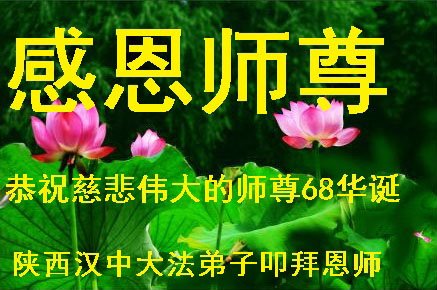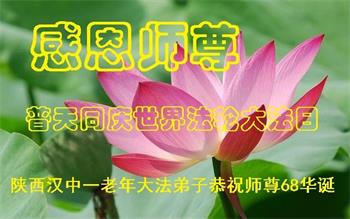陝西漢中一老年大法弟子恭祝師尊68華誕!感恩師尊慈悲苦度!普天同慶世界法輪大法日!