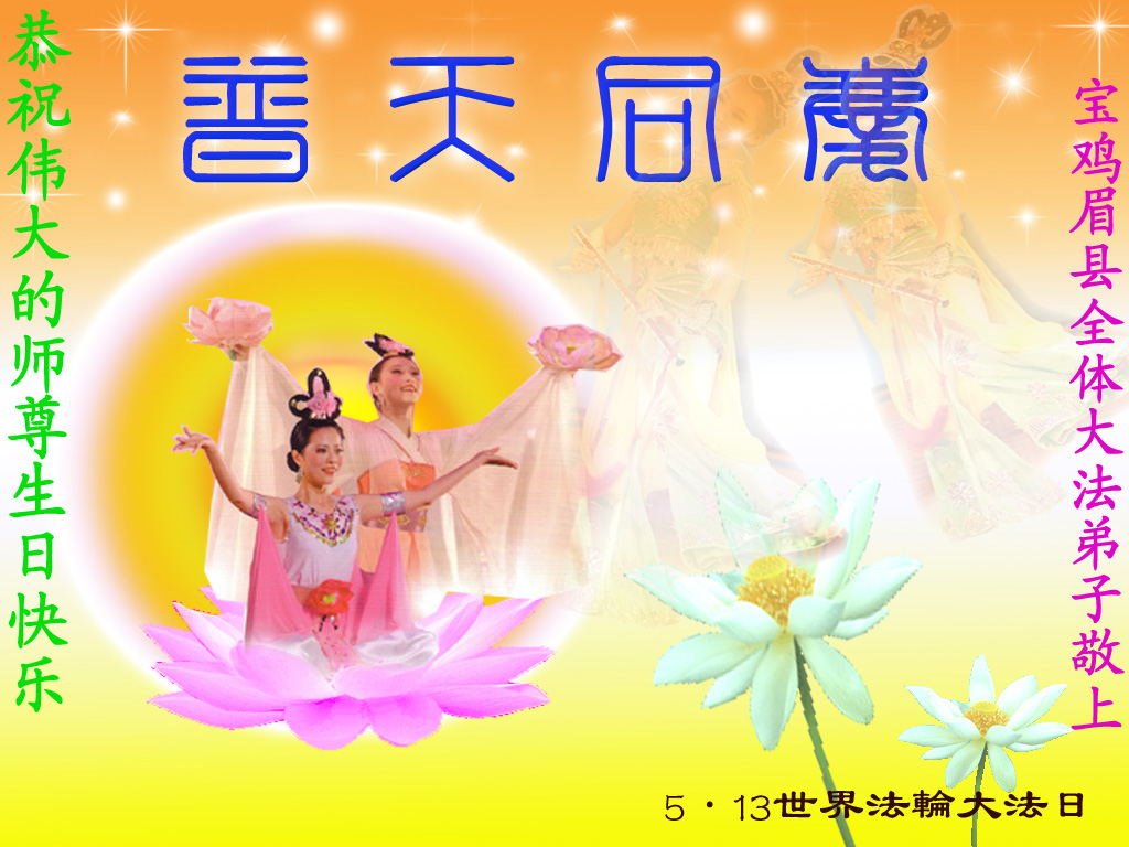 陝西省寶雞市扶風縣岐山縣、鳳翔縣、眉縣全體大法弟子恭祝師尊生日快樂!