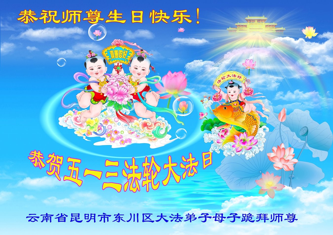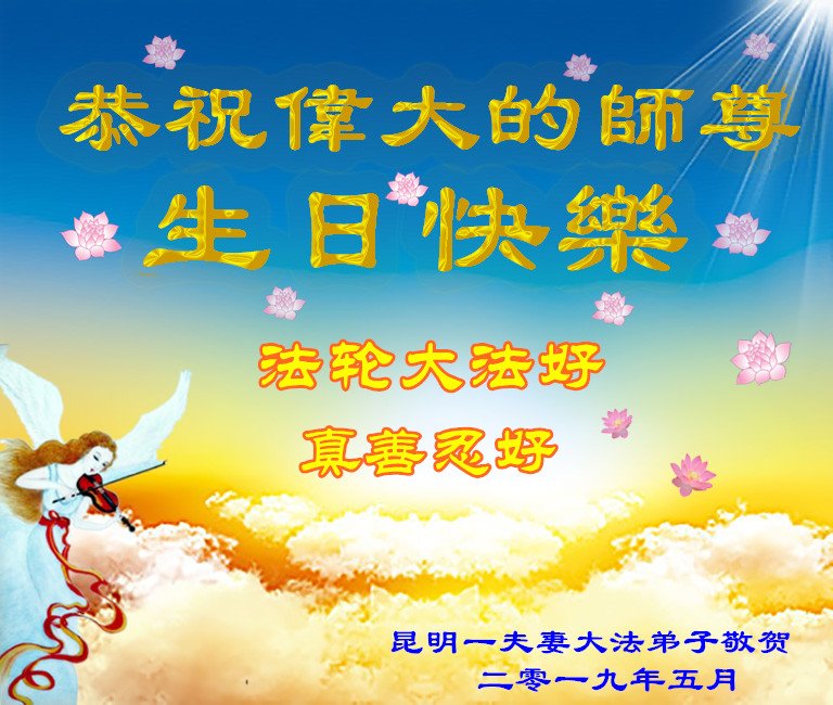 雲南省昆明一夫妻大法弟子恭賀法輪大法日暨師尊華誕!