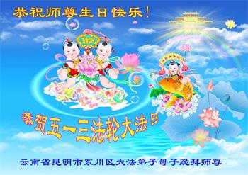 雲南省昆明市大法弟子家屬恭祝師尊生日快樂!同慶世界法輪大法日!