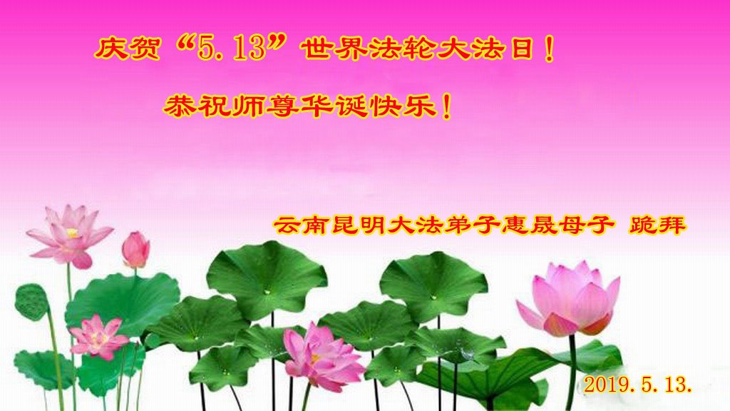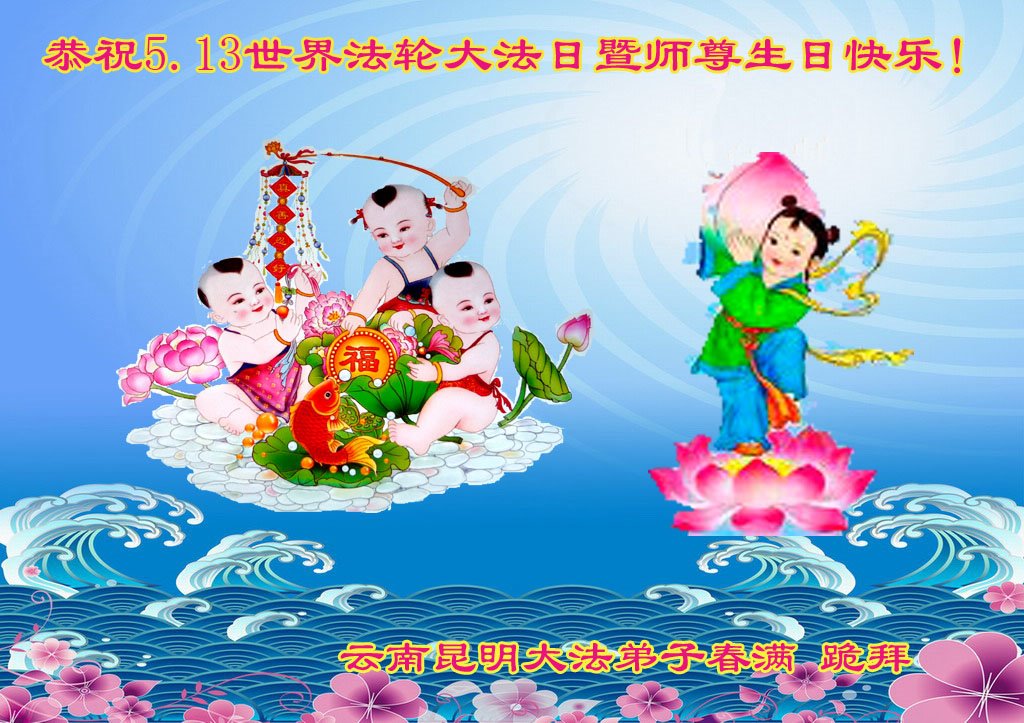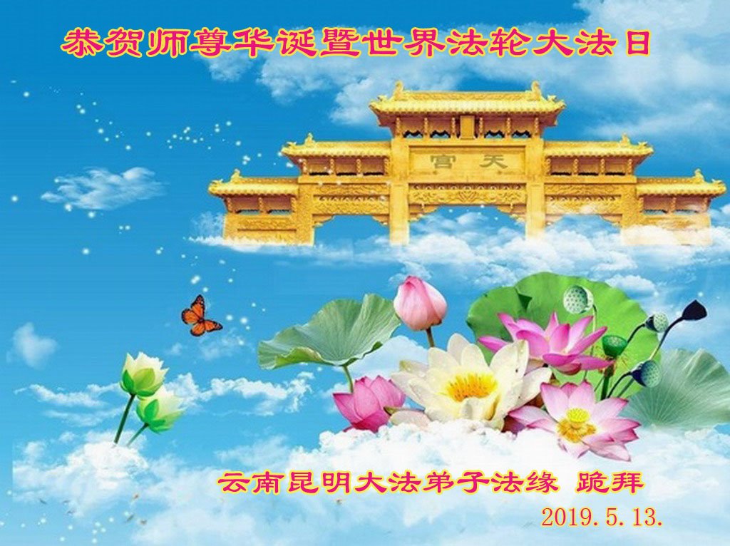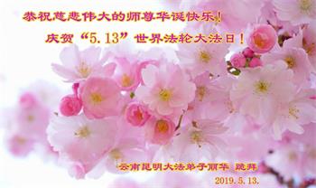 雲南昆明一大法弟子恭祝師尊生日快樂!恭賀5.13世界法輪大法日!
