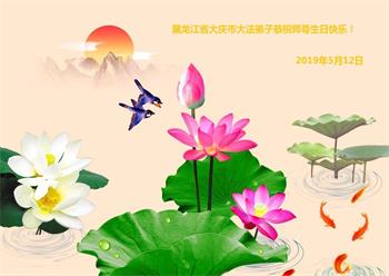 代表黑龍江省大慶所有真修大法弟子向師尊問好!祝師父生日快樂!