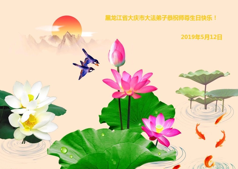 黑龍江省大慶一學法小組大法弟子恭祝師尊生日快樂!慶祝5﹒13世界法輪大法日!