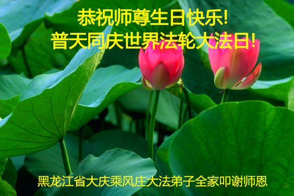 黑龍江省大慶市大法弟子全家祝賀世界法輪大法日!恭祝師尊生日快樂!