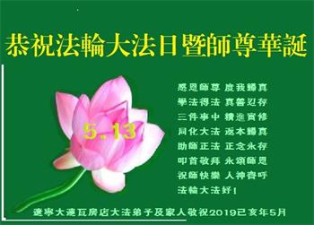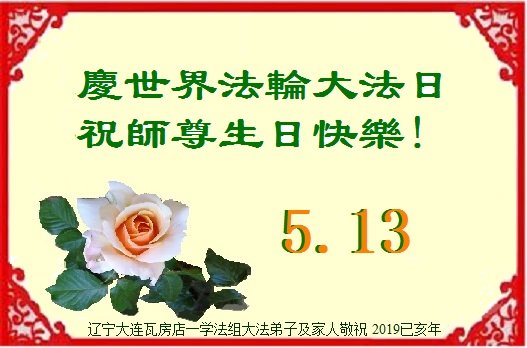 遼寧大連瓦房店學法組大法弟子及家人恭祝慈悲偉大的師尊生日快樂!慶賀5.13世界法輪大法日!慶賀師尊傳法二十七週年!