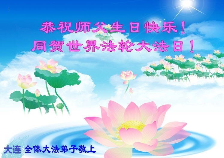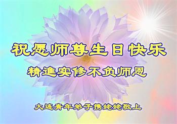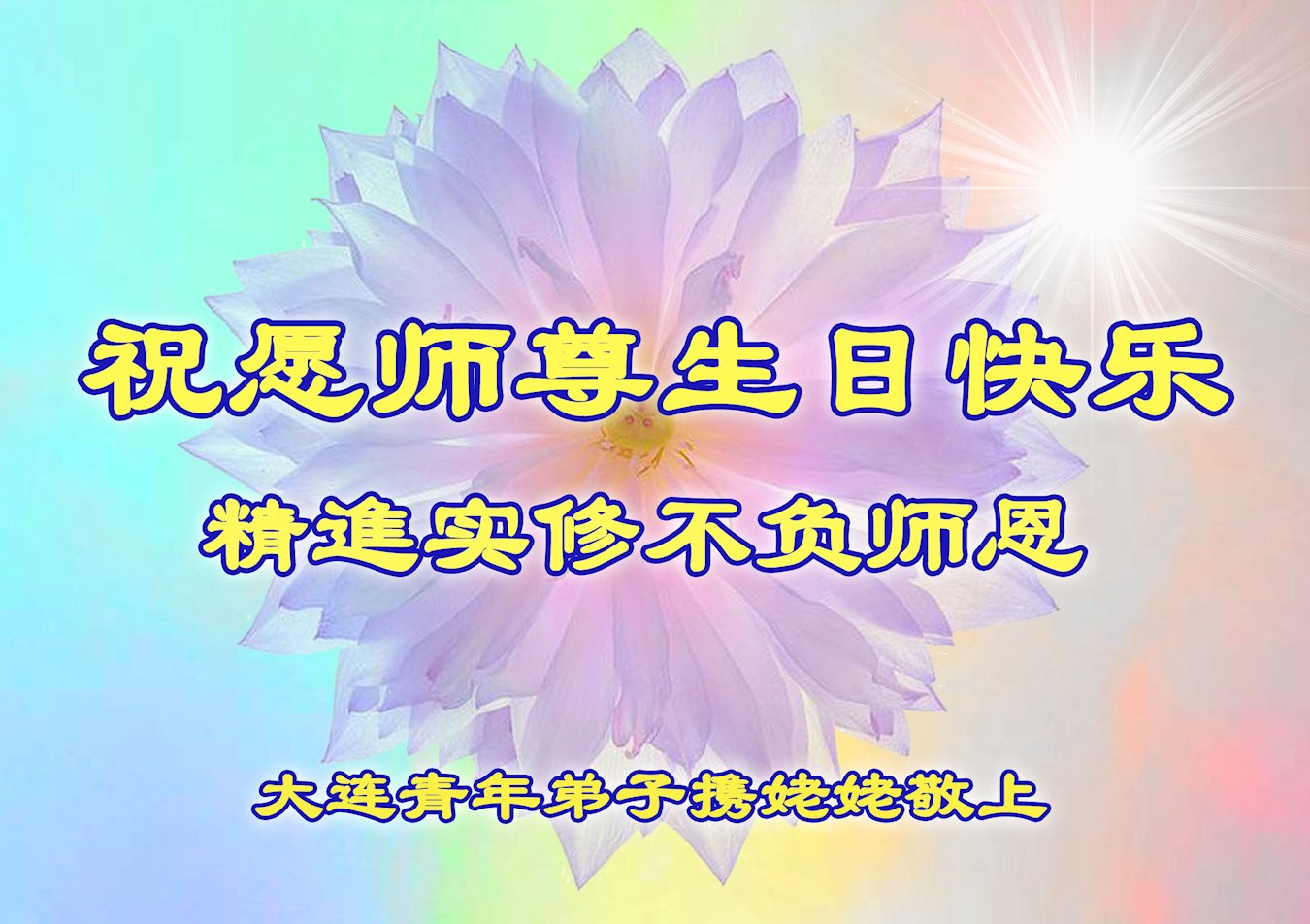 大連青年弟子恭祝師尊生日快樂!弟子感恩師尊的慈悲苦度,無法用語言訴說。在這濁世的滾滾紅塵中,如何從人中走出來,如何按照法的標準走正、真正達到法的標準,弟子差的太遠,也看到自己的差距。在接下來的日子裏,弟子要做的更好更正,請師尊放心!請師尊加持!