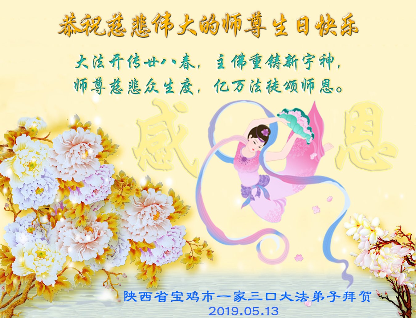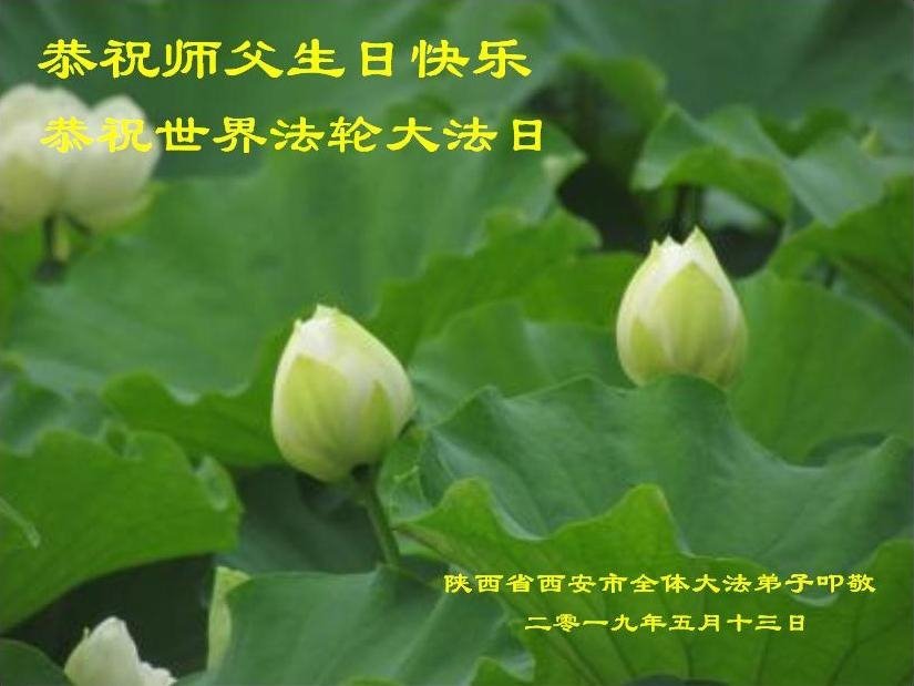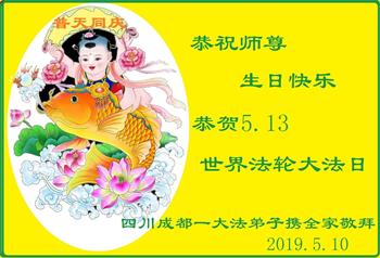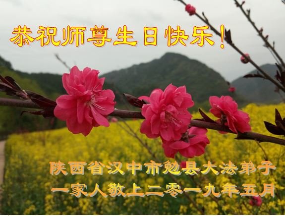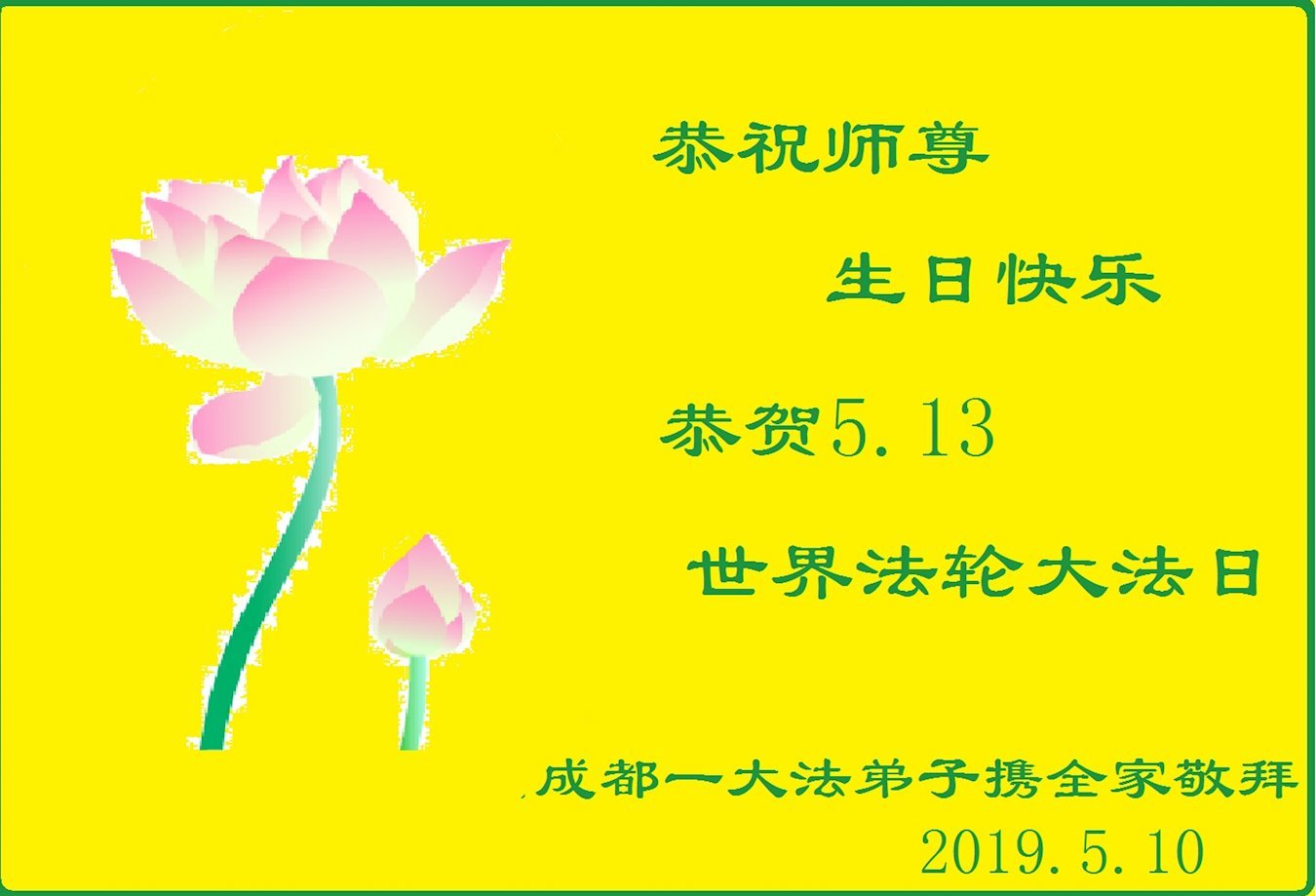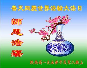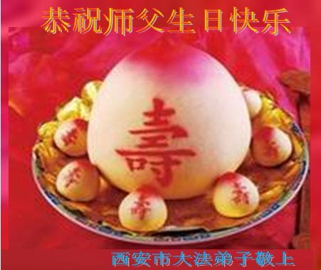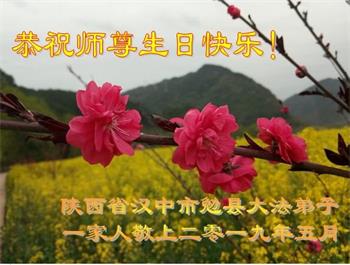 陝西省西安一弟子及家人:祝師父生日快樂!與世人同慶法輪大法日!感恩師父慈悲苦度,師父辛苦了。
