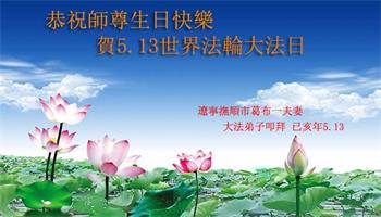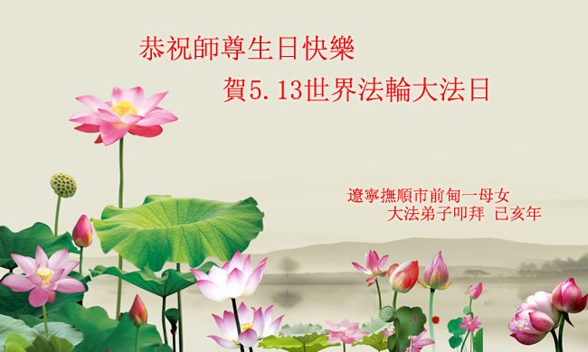 值此5.13世界法輪大法日暨師尊華誕之際,弟子一家三口及老母親和明真相的家族親人,真摯的恭祝慈悲偉大的師尊生日快樂!我們感恩師尊的慈悲救度!