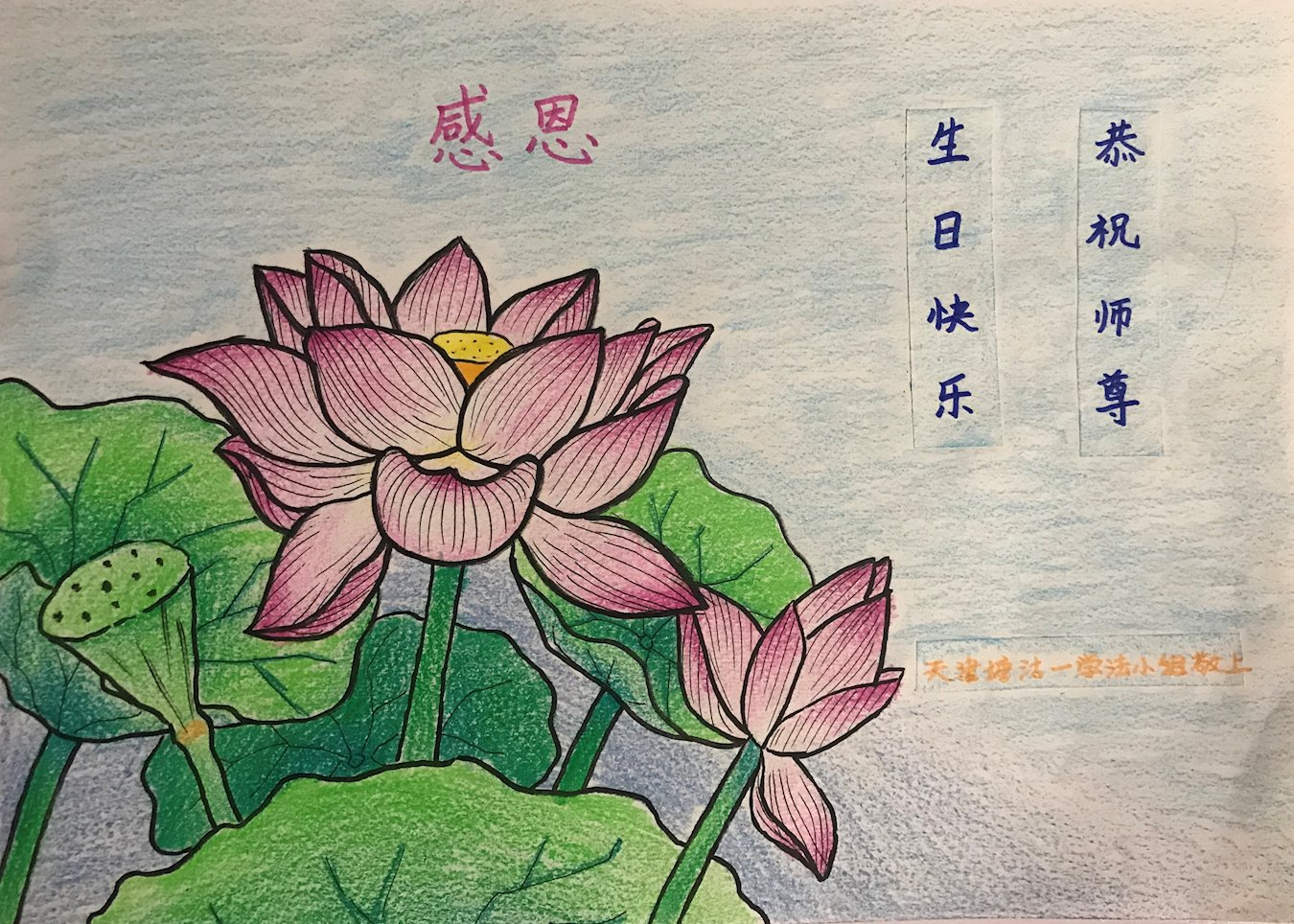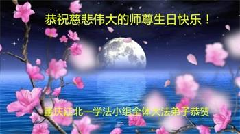 天津塘沽一學法小組大法弟子恭祝師父生日快樂!
