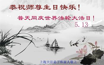 上海一家大法弟子及家人恭賀世界法輪大法日!恭祝師尊生日快樂!