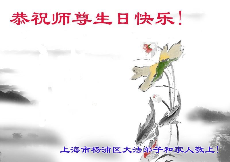 上海市楊浦區大法弟子和家人恭祝師尊生日快樂!