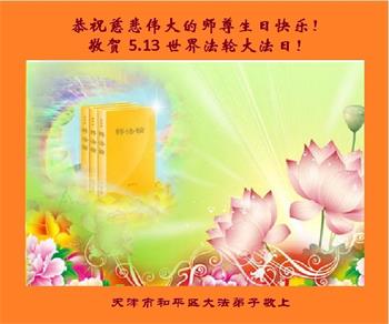 天津大法弟子恭祝慈悲偉大師尊生日快樂!恭祝世界法輪大法日!