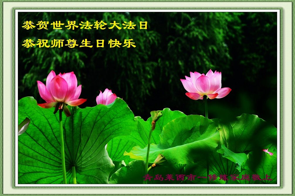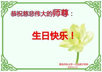 山東青島2個學法小組的弟子恭祝師尊生日快樂!恭賀法輪大法日!弟子們會做好三件事,請師尊放心!