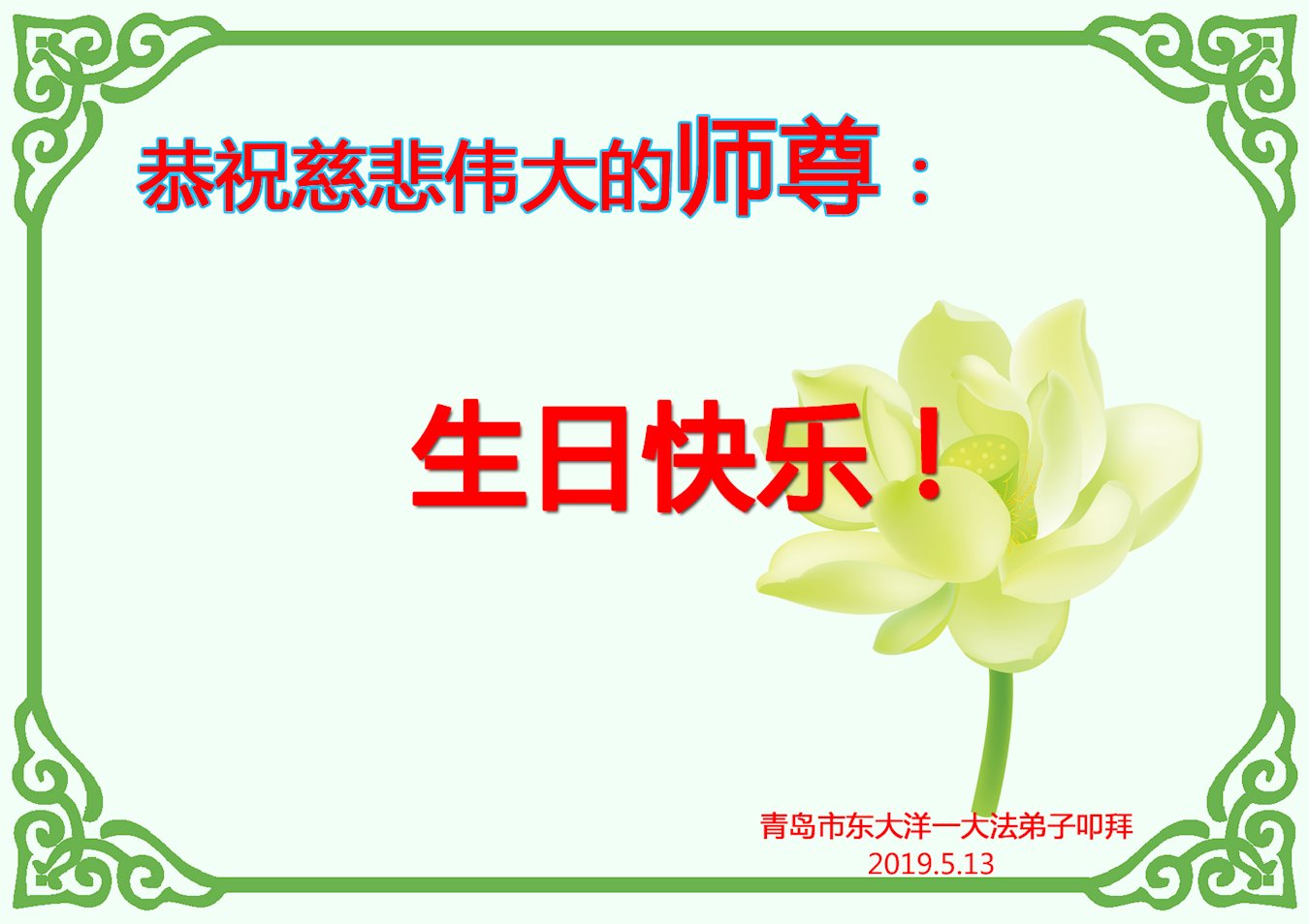 513是世界法輪大法日!是師父的生日,平度大法弟子祝師父生日快樂!