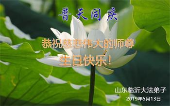山東濰坊臨朐大法弟子恭祝慈悲偉大的師尊生日快樂!慶祝世界法輪大法日!