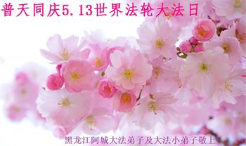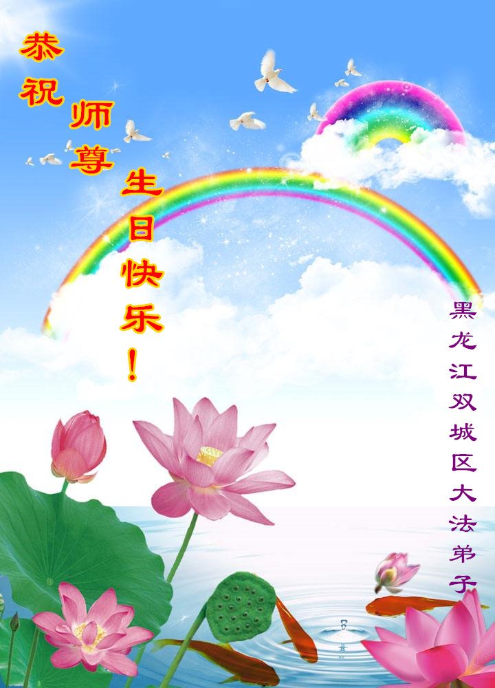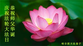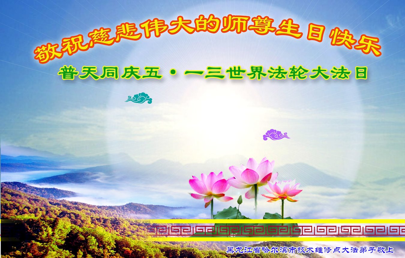 黑龍江哈爾濱市一全家大法弟子恭賀世界法輪大法日!恭祝偉大的師尊、法輪大法創始人李洪志大師生日快樂!