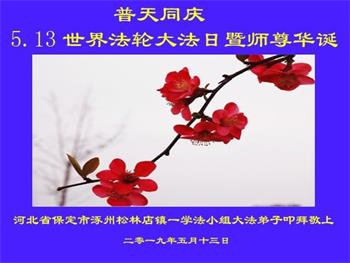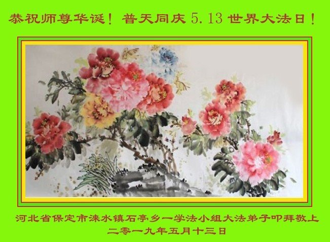 河北保定市淶水鎮石亭鄉一學法小組大法弟子恭賀法輪大法日!