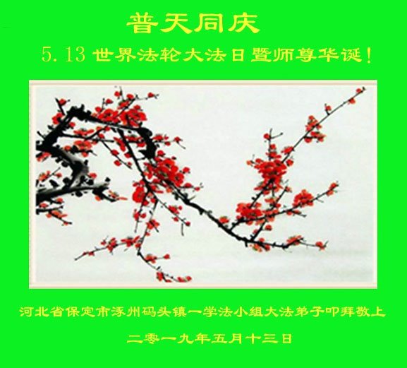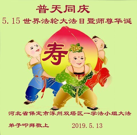 河北省保定市涿州雙塔區一學法小組大法弟子恭祝師尊生日快樂!普天同慶5.13世界法輪大法日!