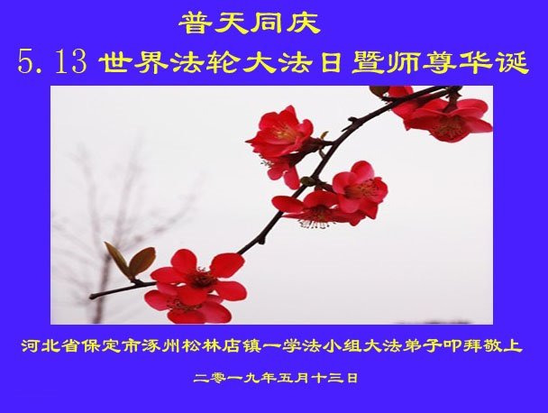 河北省保定市涿州松林店鎮一學法小組大法弟子恭賀法輪大法日!