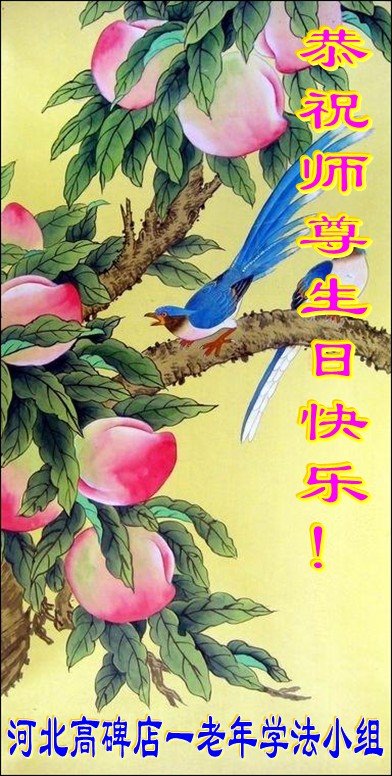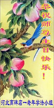 河北省保定市高碑店市一老年學法小組大法弟子恭祝師尊生日快樂!