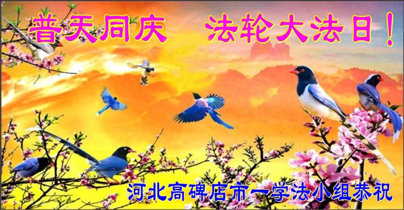 河北省保定市高碑店市一學法小組大法弟子恭賀世界法輪大法日!