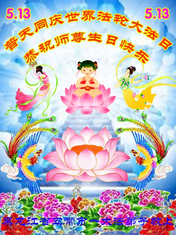 在正法進程迅猛發展中,我們又迎來了偉大輝煌的世界法輪大法日暨師尊華誕。在這普天同慶、同祝、同頌的偉大時刻,弟子們的心情無比激動,回顧二十年正法的艱難歲月,師尊為弟子們操碎了心,付出了巨大的心血,承受了巨危巨難,真是洪恩浩蕩,對偉大師尊的感恩弟子們無以言表。謝謝慈悲偉大的師尊!