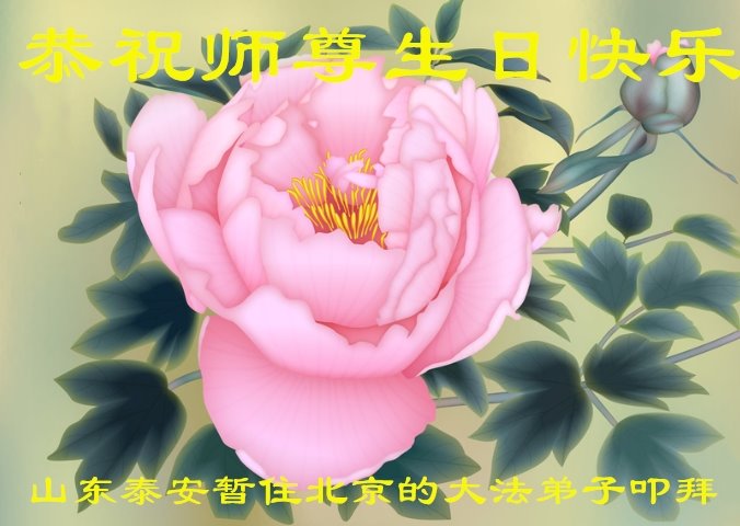 隨著正法洪勢的迅猛推進,宇宙正法已到了最後關頭,到了人類的最表層,法正人間在即。在這特殊的歷史時刻,我們滿懷著喜悅的心情,迎來了偉大的師尊六十八週年華誕暨世界法輪大法日!在這無比神聖偉大的日子裏,大陸山東全體大法弟子遙祝叩拜,誠摯恭祝慈悲 偉大的師尊生日快樂!並致以最崇高的敬意!在此,請師尊允許弟子們向您道一聲發自生命深處的感恩:「師父啊,您太辛苦了!弟子深深的感受到您為拯救弟子們歷盡的艱難和所承受、付出的一切,就是蘸盡滄海之水也道不盡您對弟子們的巨大恩德!弟子們仰望蒼穹跪拜慈悲偉大的師尊救度洪恩!」