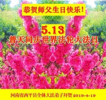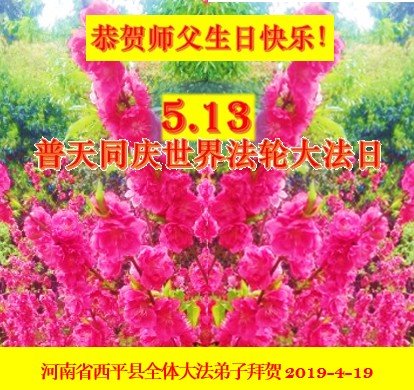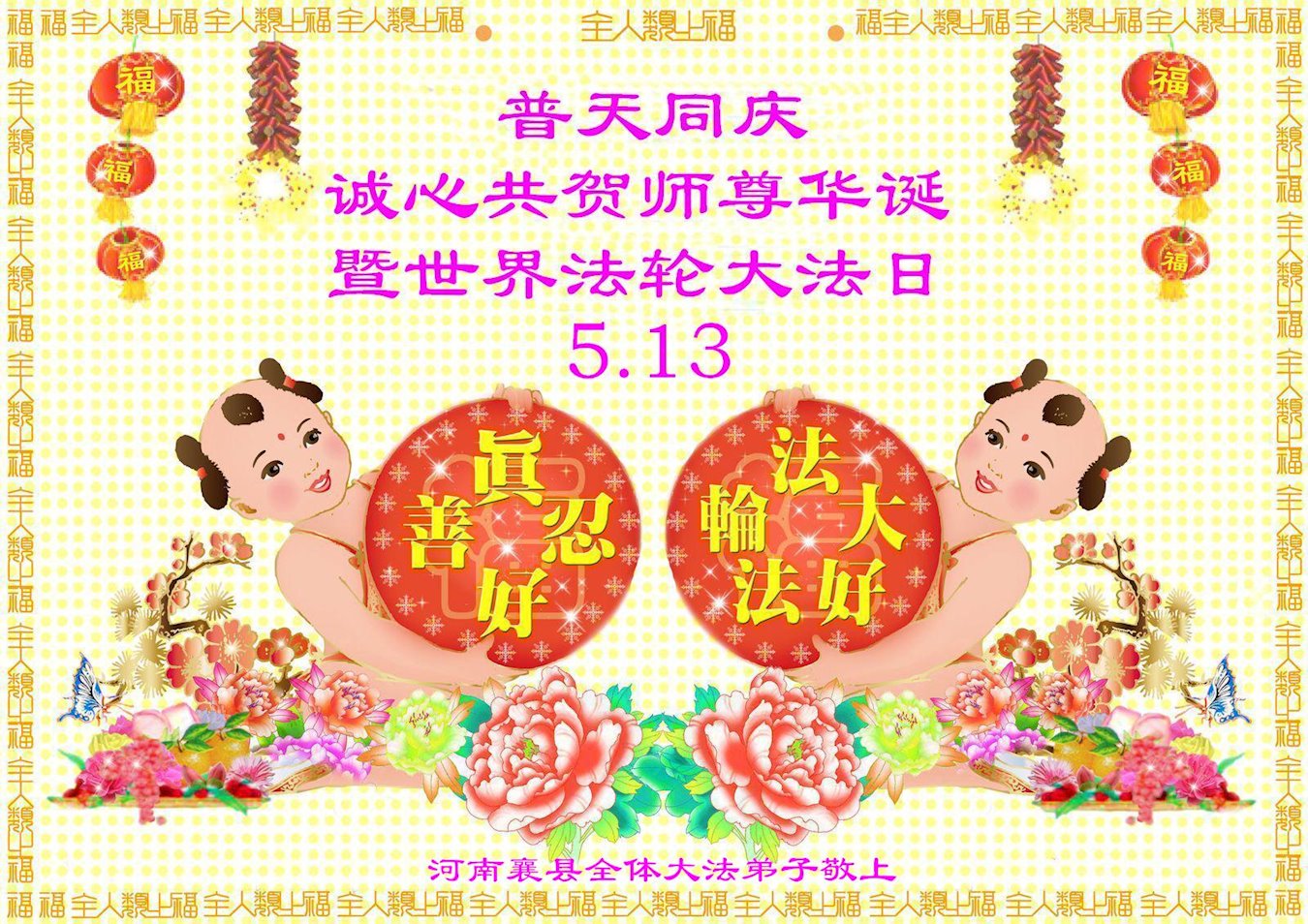 河南襄縣全體大法弟子恭祝慈悲偉大的師尊生日快樂!慶祝5.13世界法輪大法日!