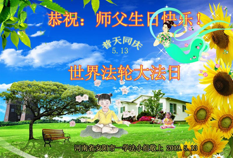 河南省安陽一學法小組大法弟子恭祝師尊生日快樂!普天同慶世界法輪大法日!