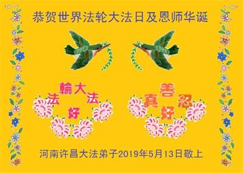 河南許昌大法弟子恭賀世界法輪大法日及恩師華誕!