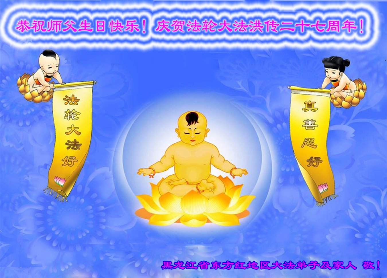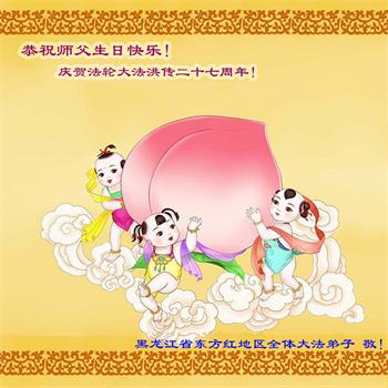 黑龍江省東方紅地區全體大法弟子恭祝師父生日快樂!慶賀法輪大法洪傳二十七週年!