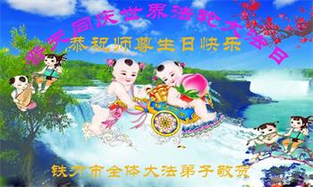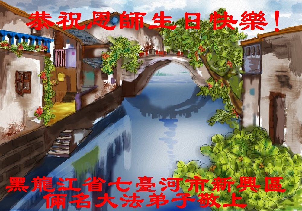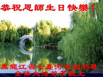 黑龍江省七台河市茄子河區全體大法弟子恭祝恩師生日快樂!