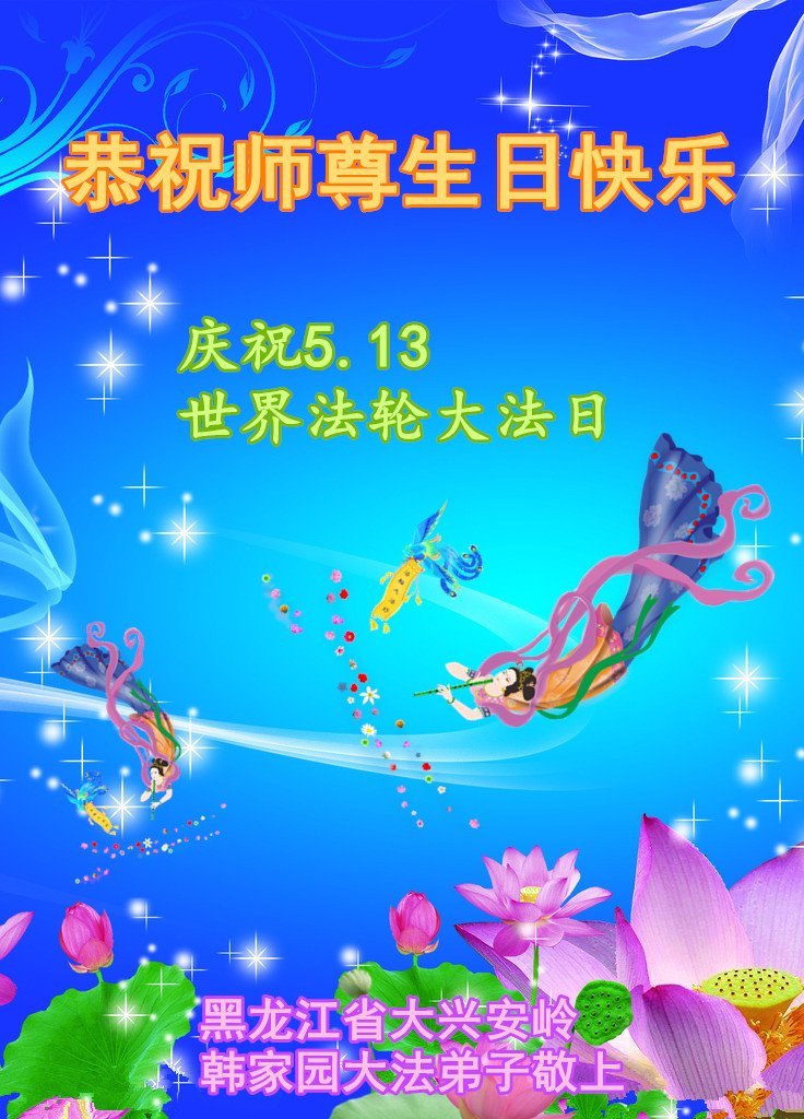 黑龍江省大興安嶺地區韓家園大法弟子恭祝師父生日快樂!