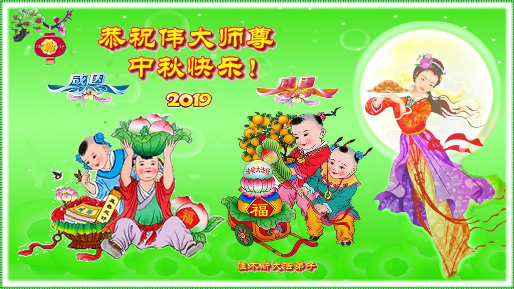 大法放光輝,中秋月兒美。
