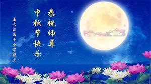 每到中秋團圓日,我們都會通過明慧網向師尊表達心中的想念,二十年的迫害,弟子沒有畏懼,「真善忍」的法理至深於生命的根底,跟隨師尊下世,助師正法,救度世人,勿忘初衷,是弟子們來世間的責任與使命。弟子們會做到越最後越精進,正念正行,整體配合做好大法弟子該做的事。