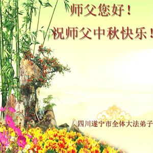 四川遂寧大法弟子仙蓉、桂華、大芳弟子恭祝慈悲偉大的師尊中秋節快樂!