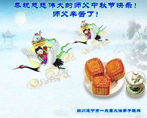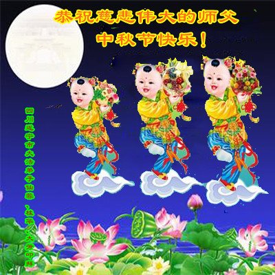 在這中秋佳節之際,中國大陸的大法弟子,都很想念偉大的師父,望師父早日回到大陸。與弟子們相聚。請師父放心,在最後的時間裏不論時間多緊,都要做好師父要求的三件事,每一分,每一秒都要珍惜,走好最後的路,讓師父多一份欣慰,少一份操勞,謝謝師父!