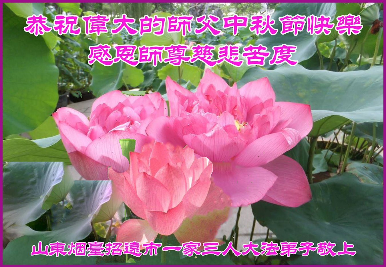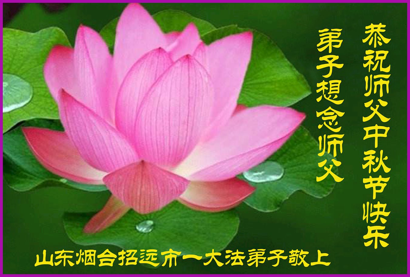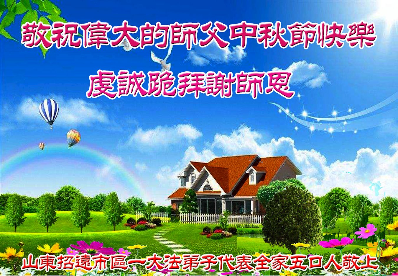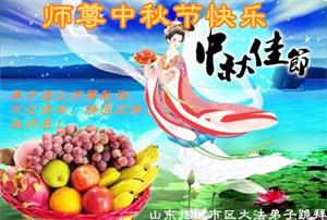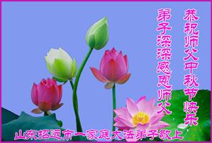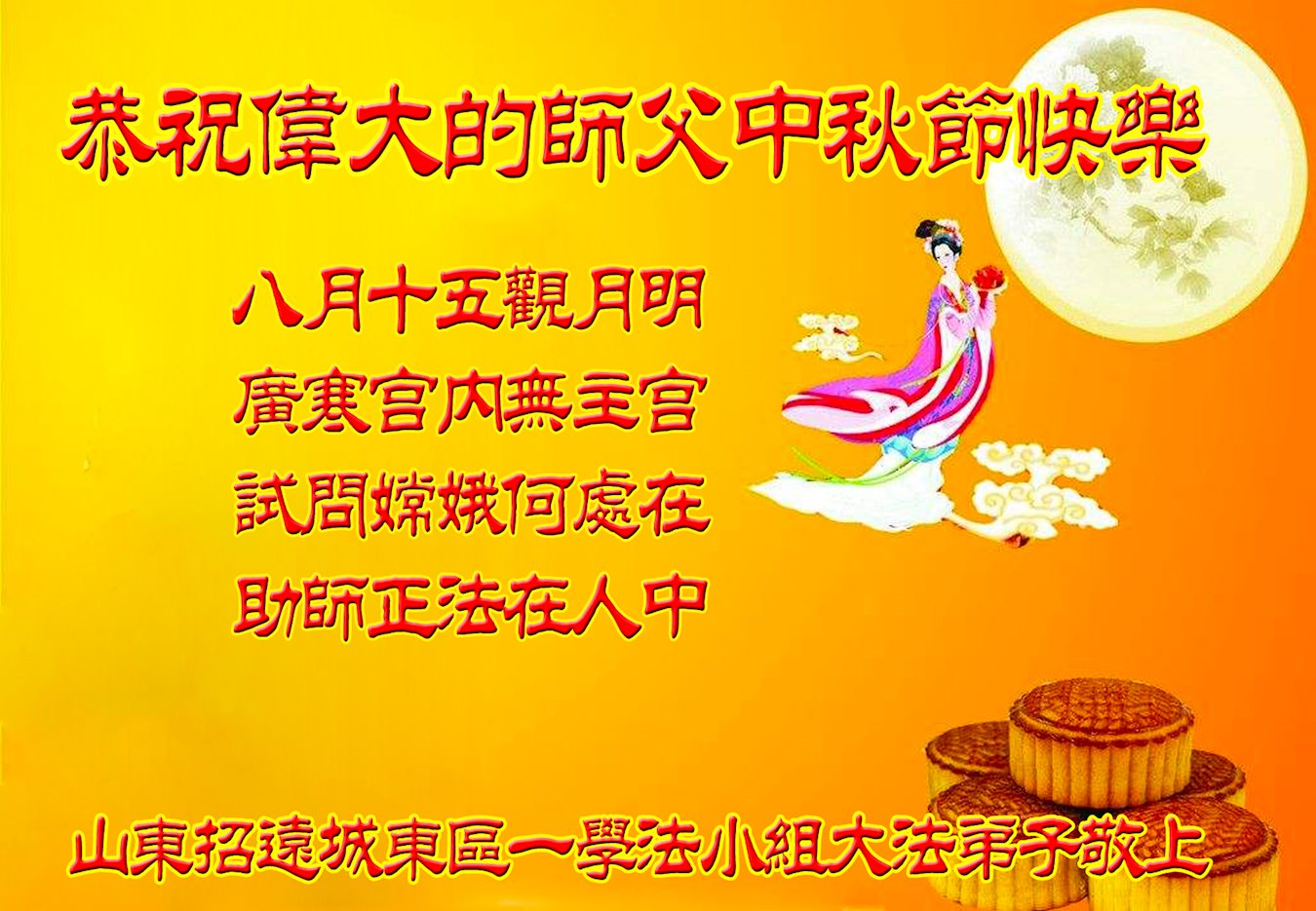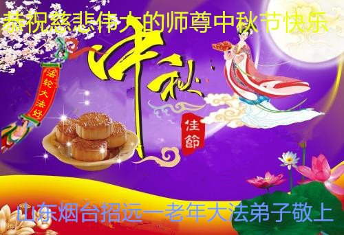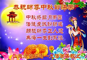 山東煙台市棲霞市一學法小組大法弟子恭祝慈悲偉大的師尊中秋節快樂!