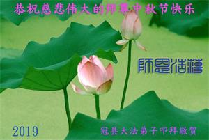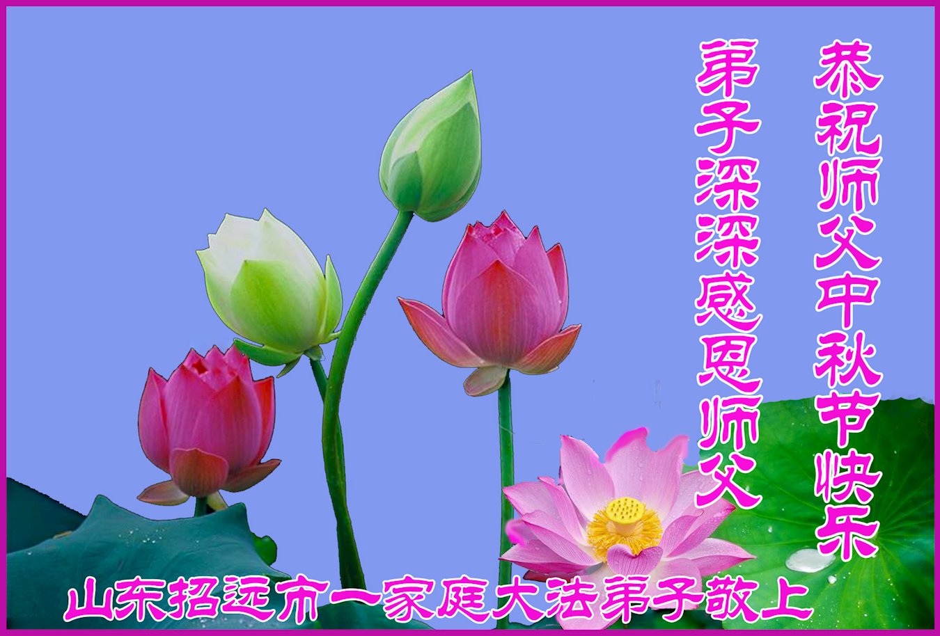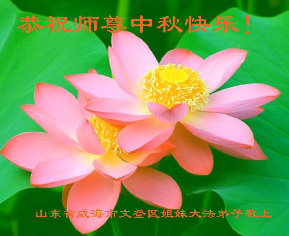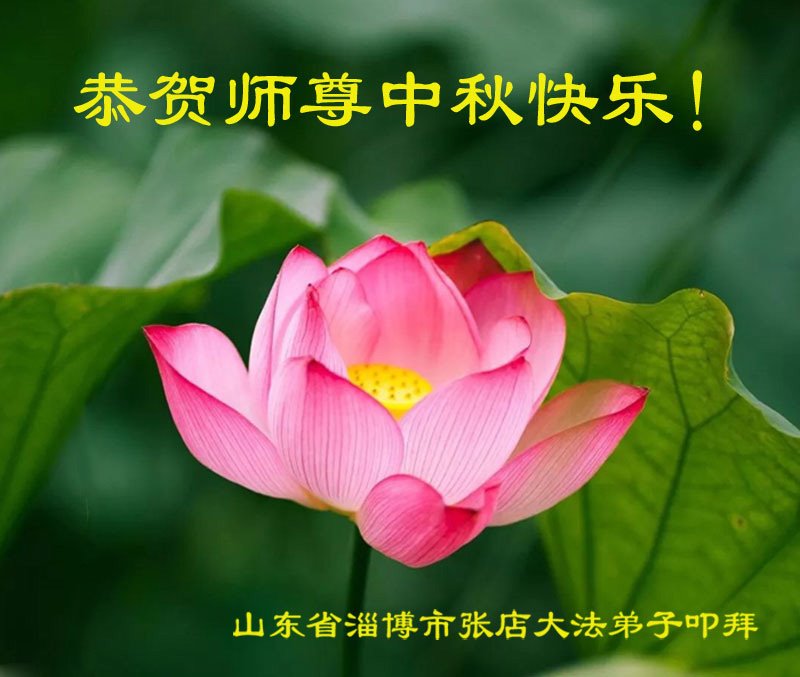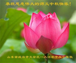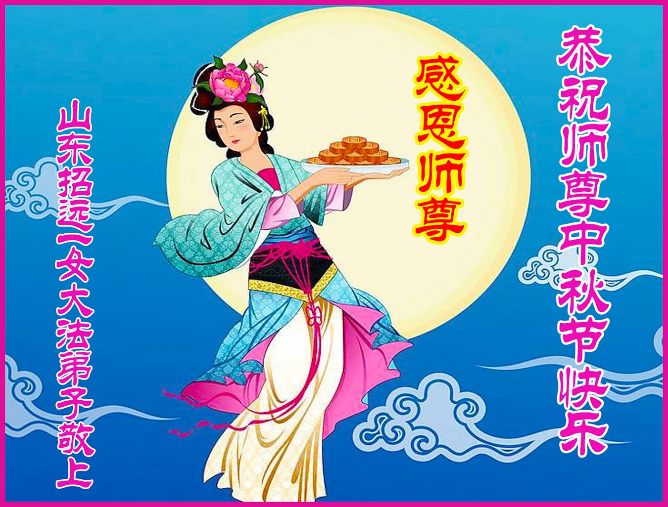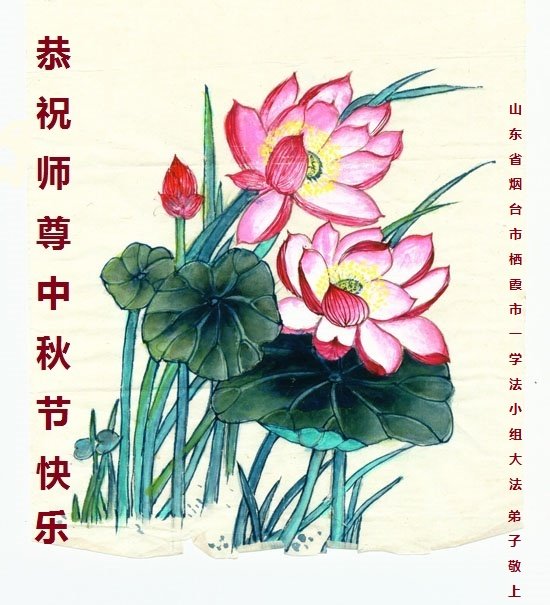 山東煙台市棲霞市一學法小組大法弟子恭祝慈悲偉大的師尊中秋節快樂!