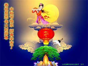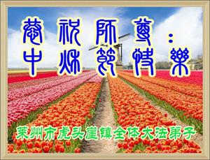 師尊正法救蒼生,弟子正念助師行。師尊辛苦了,在中秋佳節來臨之際,我們萊州市虎頭崖鎮全體大法弟子恭祝師尊中秋節快樂!