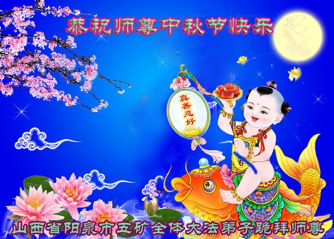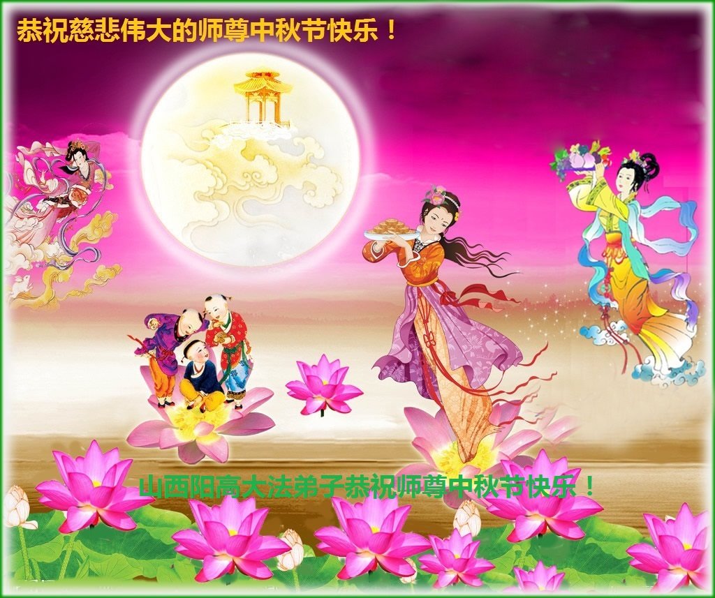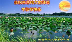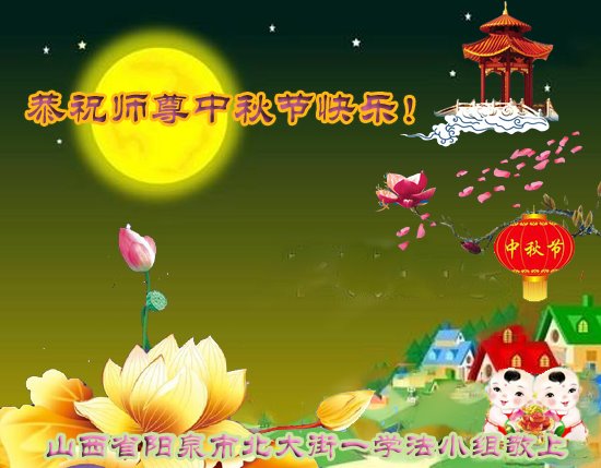 山西省陽泉市北大街一學法小組大法弟子恭祝慈悲偉大的師尊中秋節快樂!